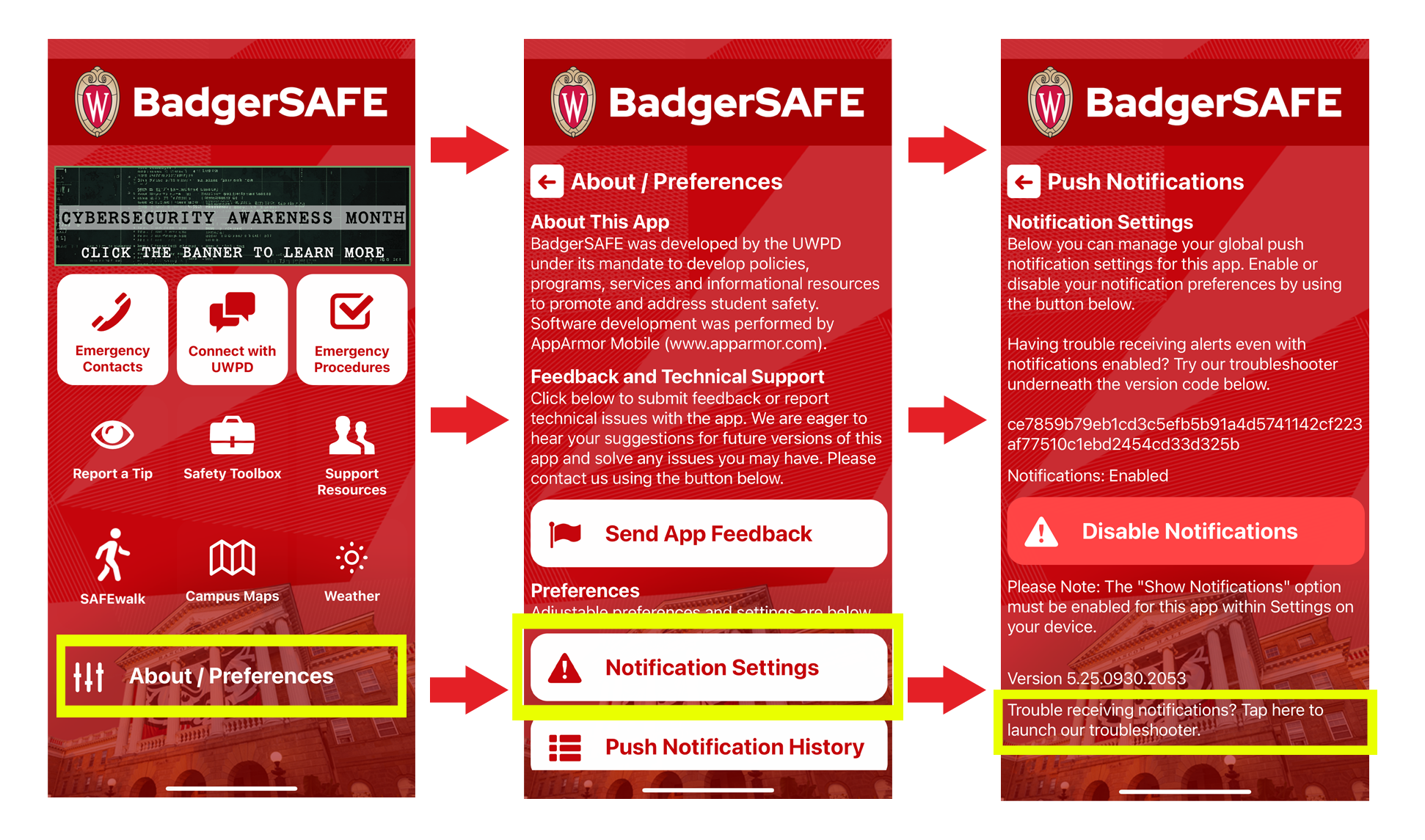 Double-check that notifications are enabled in both your phone settings and the BadgerSAFE app